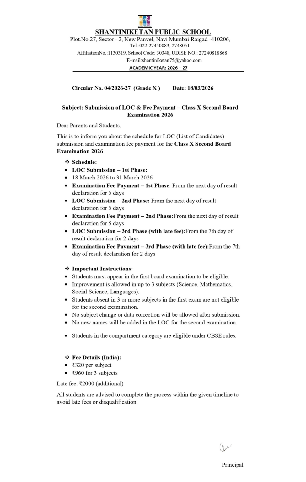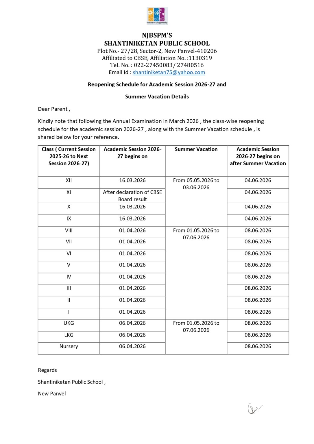 - Annual Examination of Art and GK + Mental Maths will be held on 21st February 2026 Saturday during school hours.
