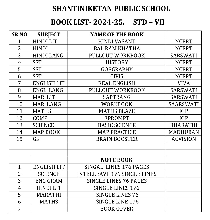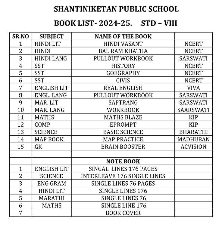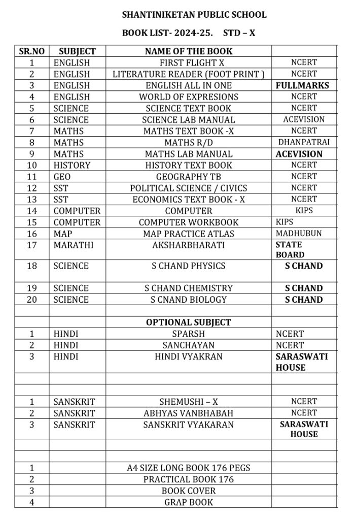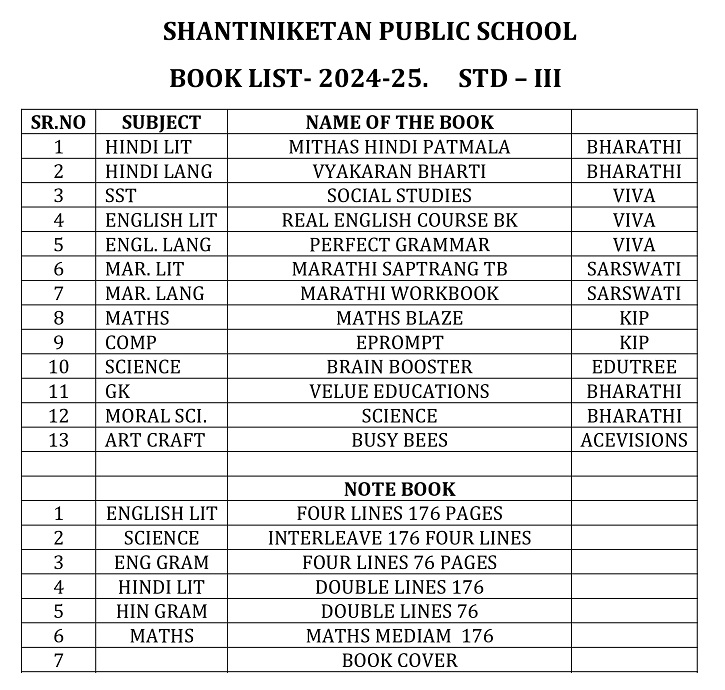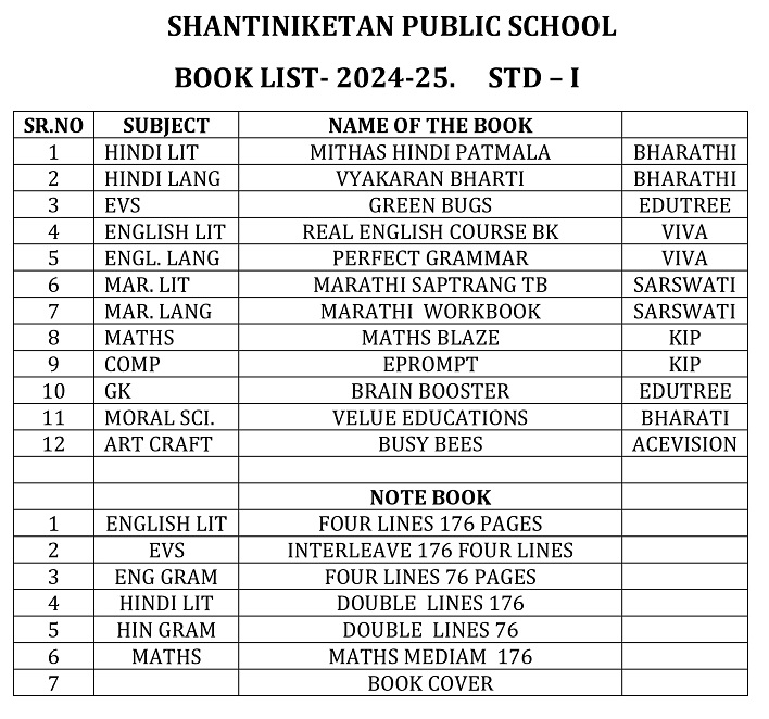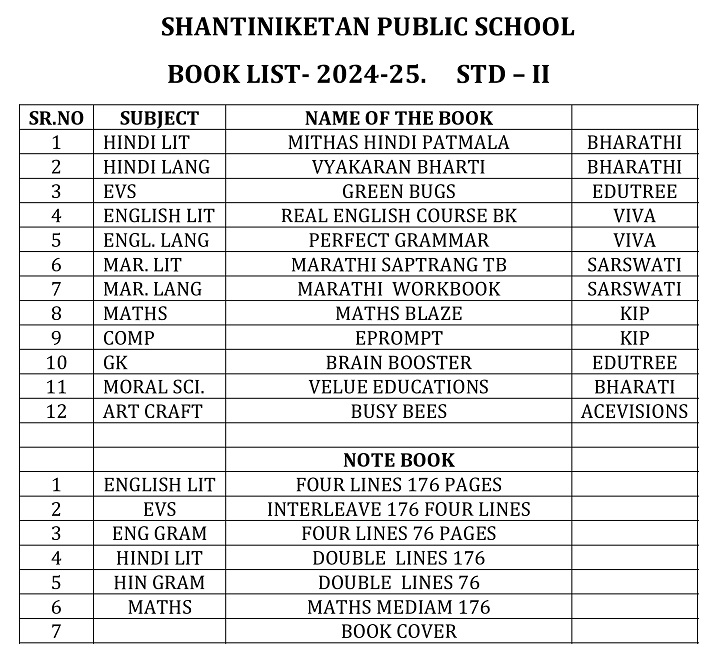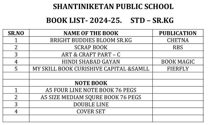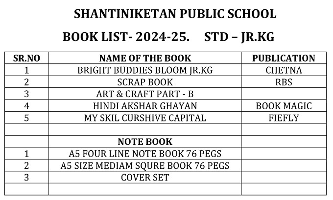 Publication List of prescribed textbooks Nursery Junior Kg Senior Kg I II III IV V VI VII VIII IX X XI